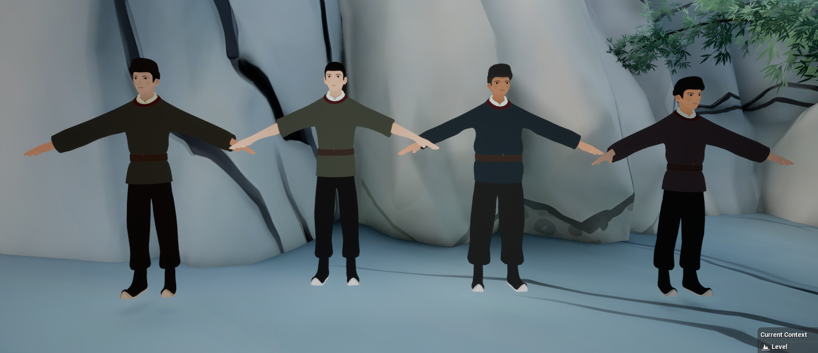 Differentiated the modeling and material treatment of the four villagers, updating related textures and meshes